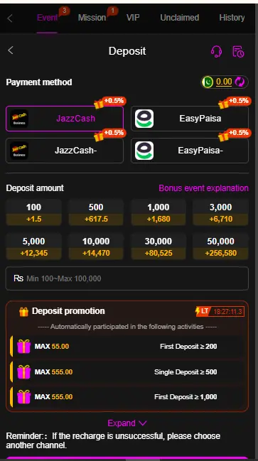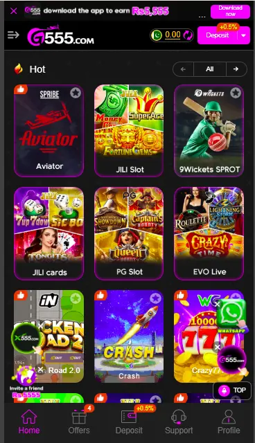 To start playing, open the G555 app and go to the Wallet section. Choose the Deposit option and select your preferred payment method, like Easypaisa, JazzCash, or bank transfer. Enter the amount you want to add and confirm your transaction. The money will appear in your game wallet within a few minutes. Always make sure your account details are correct before depositing.