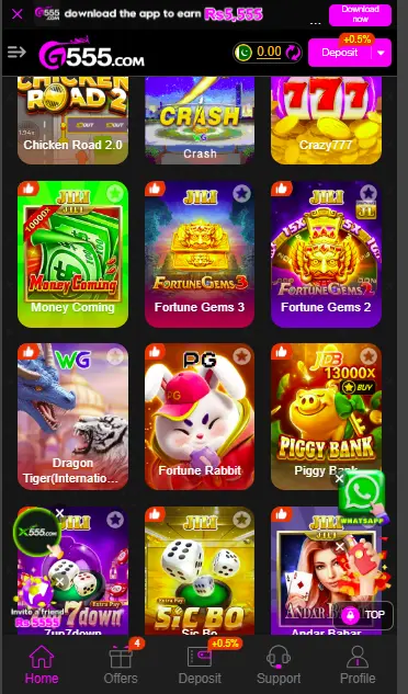 The latest version of G555 runs smoothly on both Android and iOS phones. It offers a colorful layout, clear rules, and a fast sign-up process for all users. Players can withdraw earnings securely through JazzCash, Easypaisa, or direct bank transfer. It gives welcome bonuses, referral rewards, and daily login gifts to keep players active. This makes it one of the most popular real money apps in Pakistan.