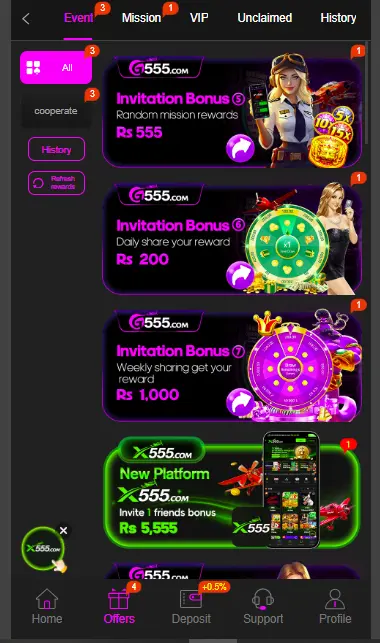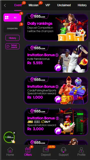 The refer-and-earn feature lets you make extra money without playing constantly. You can invite friends or family through your referral link. Once they join and play, you receive a fixed reward automatically in your wallet. The more people you invite, the more money you earn daily. It’s one of the easiest and most popular ways to grow income through G555.